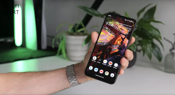 الواجهة الأمامية للهاتف تكاد تكون مسطحة تمامًا، وهي عبارة عن لوحة كبيرة من زجاج Gorilla Glass Victus، ولا يمكننا الشكوى من ذلك. كما ذكرنا، فإن موضوع الحواف غير مثالي، وليس هناك استفادة كبيرة من المساحة الإضافية هنا، حيث لا يوجد شيء خاص في هذه المناطق مثل نظام السماعة الاستريو.