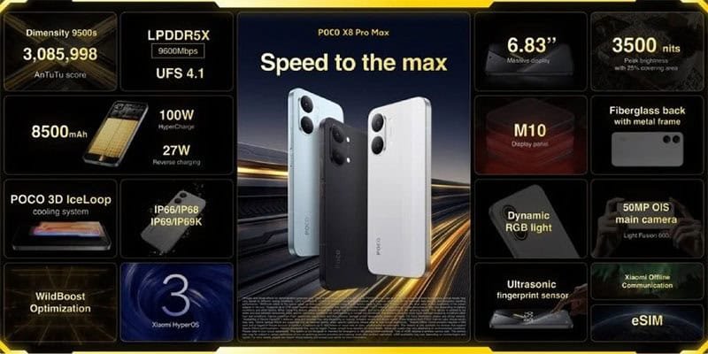 كما تدعم الشريحة الجديدة ذاكرة LPDDR5X وتخزين UFS 4 على مستوى المنصة، بينما يأتي هاتف Poco X8 Pro نفسه رسميًا بذاكرة LPDDR5X وتخزين UFS 4.1، إلى جانب MediaTek NPU 880 لمعالجة مهام الذكاء الاصطناعي. لذلك، فالصياغة الأدق هنا ليست فقط أنه هاتف أسرع من الجيل السابق، بل إنه أيضًا أكثر جاهزية للاستخدامات الحديثة مثل تعدد المهام، الألعاب، وبعض مزايا الذكاء الاصطناعي المدمجة في النظام.