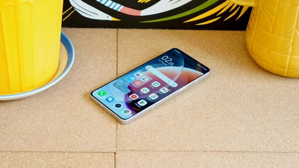 التصميم : يتميز بأبعاد 162.7×76.2×7.9 مم ووزن 210 جرام، مع واجهة زجاجية محمية بزجاج غوريلا 5، وإطار وظهر من الألمنيوم بتشطيب بوليمر سيليكوني (جلد بيئي). الهاتف حاصل على شهادة IP54 لمقاومة الغبار ورذاذ الماء.